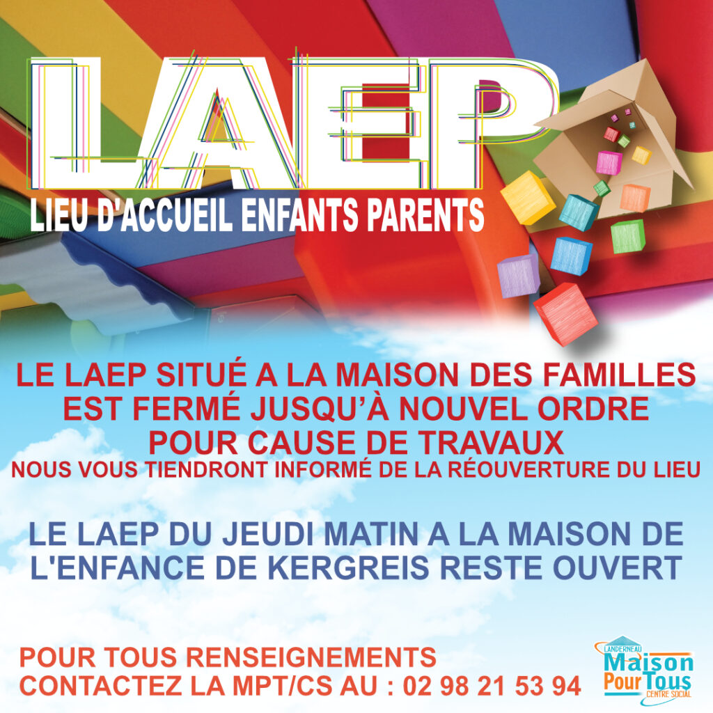 Fermeture du LAEP de la Maison des Familles situé à la Maison Pour Tous / Centre social pour cause de travaux.